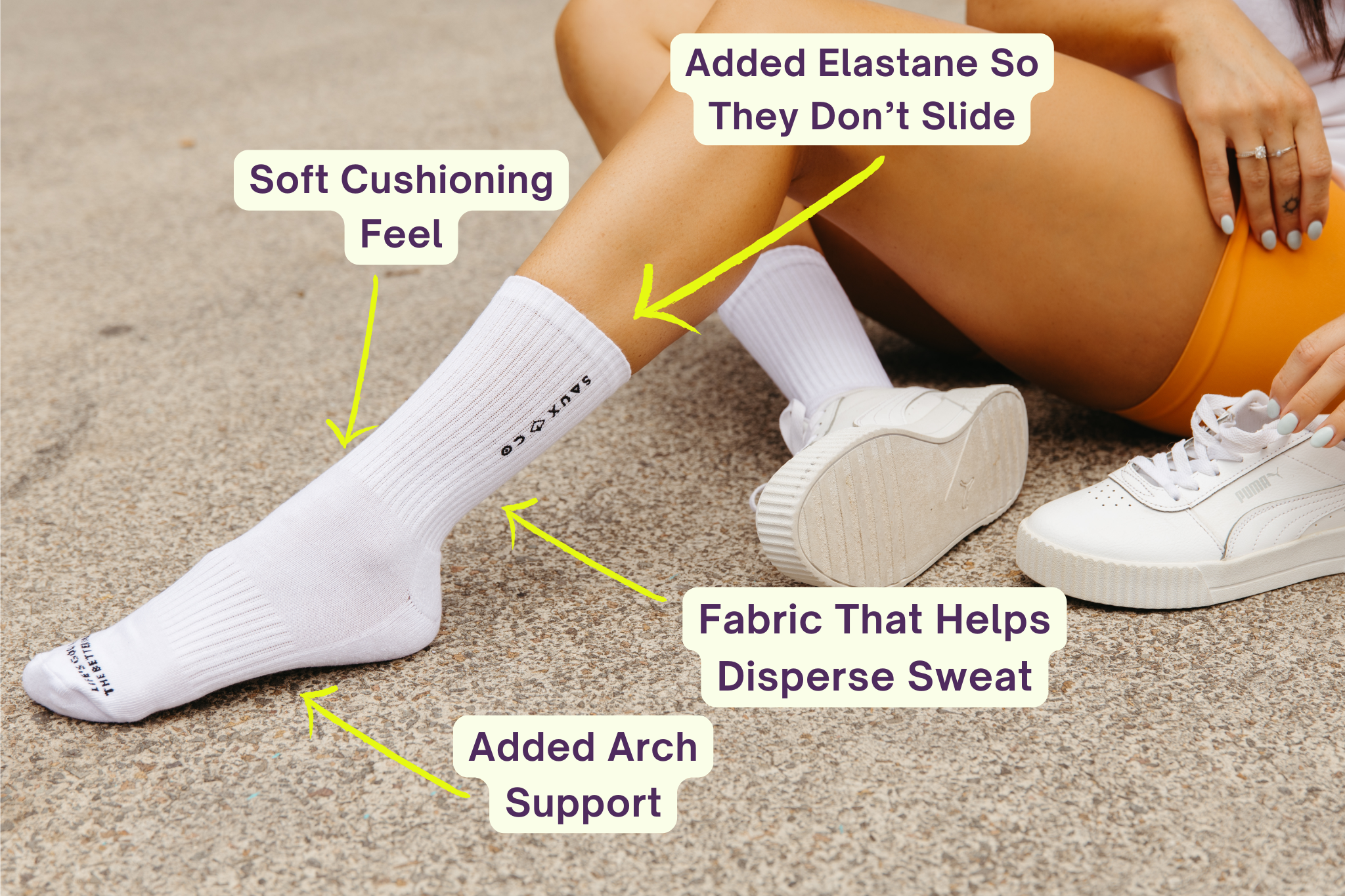 We've added additional arch support to our socks to help give you that extra support and PERFECT fit